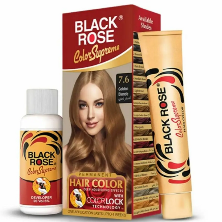 Black Rose Hair Color 160 Rs pack ek premium quality hair dye hai jo baalon ko rich aur long-lasting color provide karta hai. Ye specially gray/white hairs ko effectively cover karta hai aur natural look deta hai.